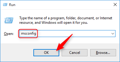 msconfigand click OK (or press Enter).
